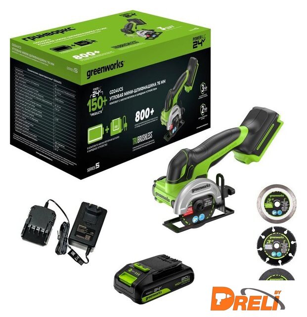 | Комплект поставки | - Ключ- Зажимная гайка- Опорный фланец- Алмазный диск- Отрезной диск- 1 акб |