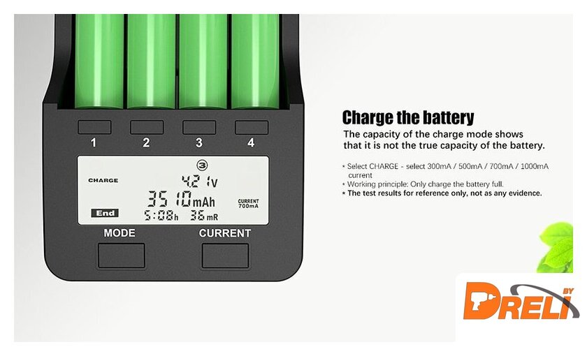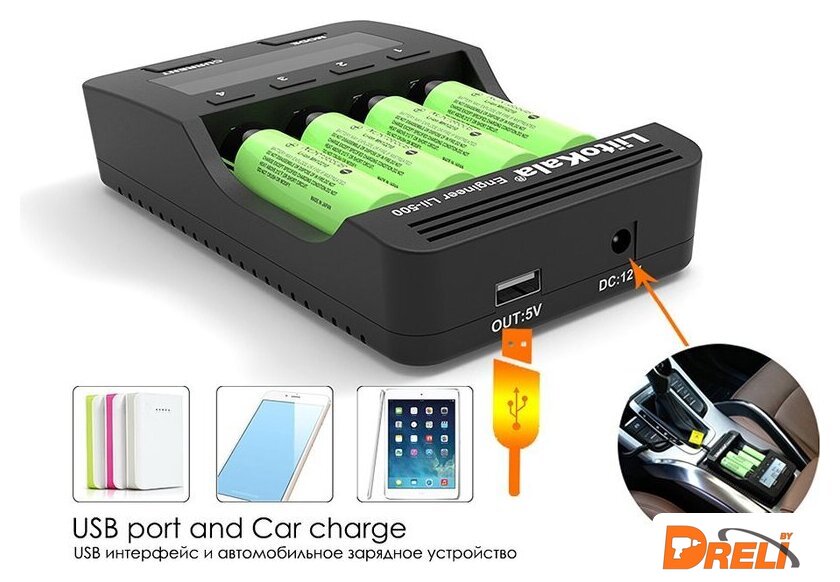 | Типоразмер | AA, AAA, 18650, 10440, 14500, 16340, 17335, 17500, 17670, 18490, 26650 |