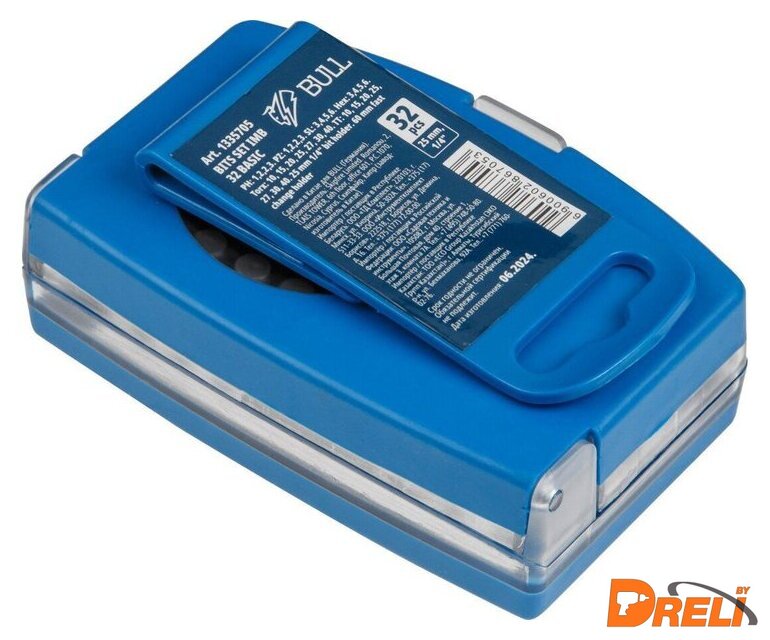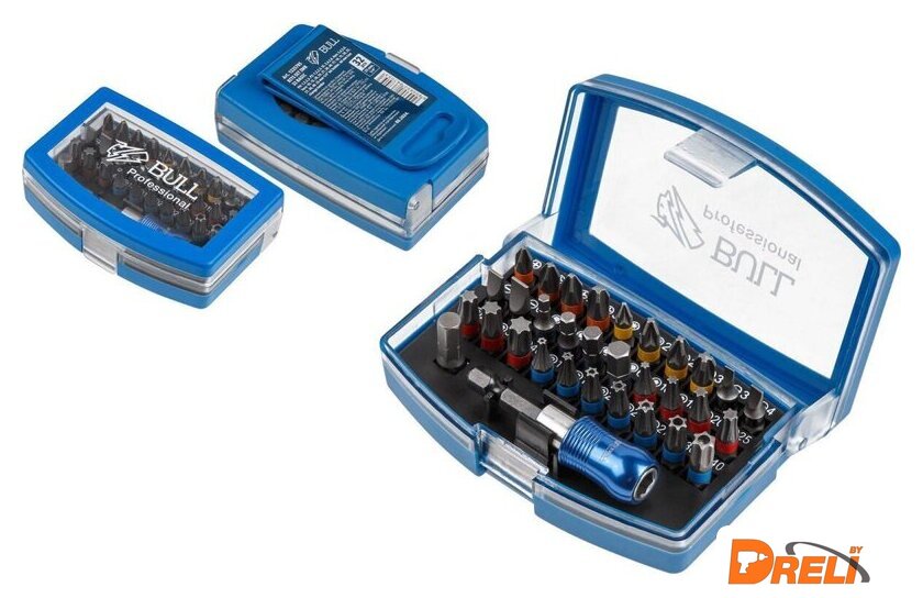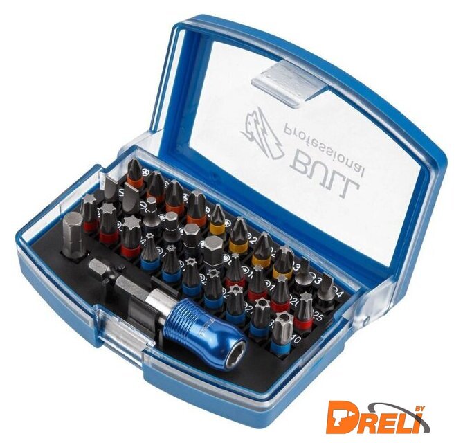 | Комплектация | 30 бит, 25 мм: PH 1/2/2/3, PZ 1/2/2/3, SL 3/4/5/6, Hex 3/4/5/6, Torx 10/15/20/25/27/30/40, TT 10/15/20/25/27/30/40; магнитный держатель для бит, 60 мм - 1 шт.;держатель торцевых головок 1/4", 25 мм - 1 шт.; |