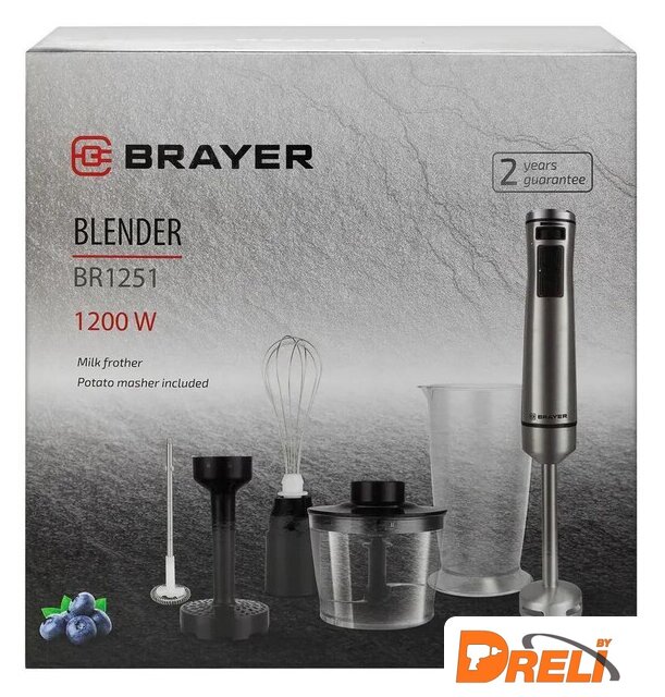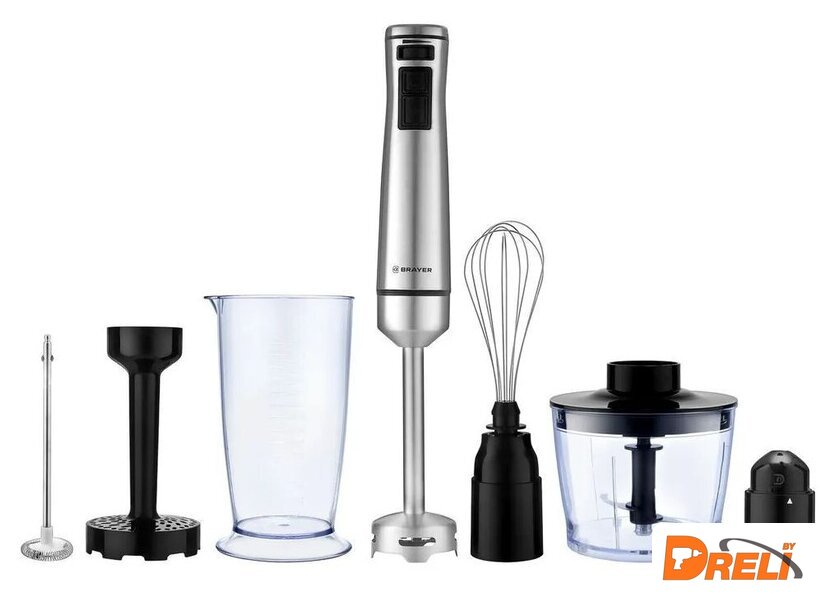 Комплектация | 1. Моторный блок — 1 шт.2. Насадка-блендер — 1 шт.3. Редуктор венчика, измельчителя и насадки-капучинатора — 1 шт.4. Насадка-венчик — 1 шт.5. Крышка — 1 шт.6. Нож-измельчитель — 1 шт.7. Ёмкость измельчителя — 1 шт.8. Стакан — 1 шт.9. Насадка для картофельного пюре — 1шт.10. Редуктор насадки для картофельного пюре – 1 шт.11. Насадка-капучинатор – 1 шт.12. Инструкция — 1 шт. |
