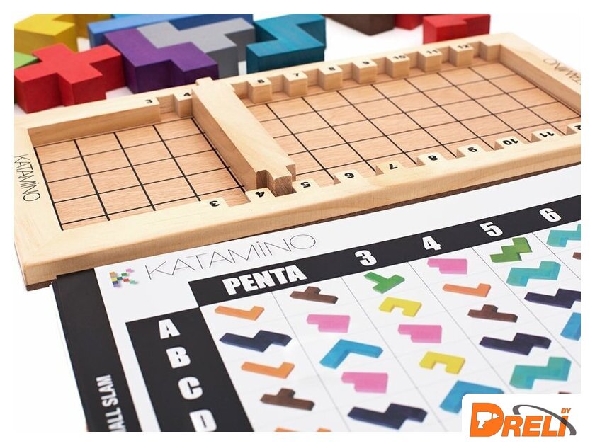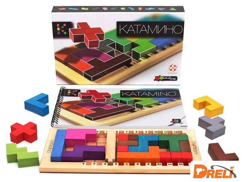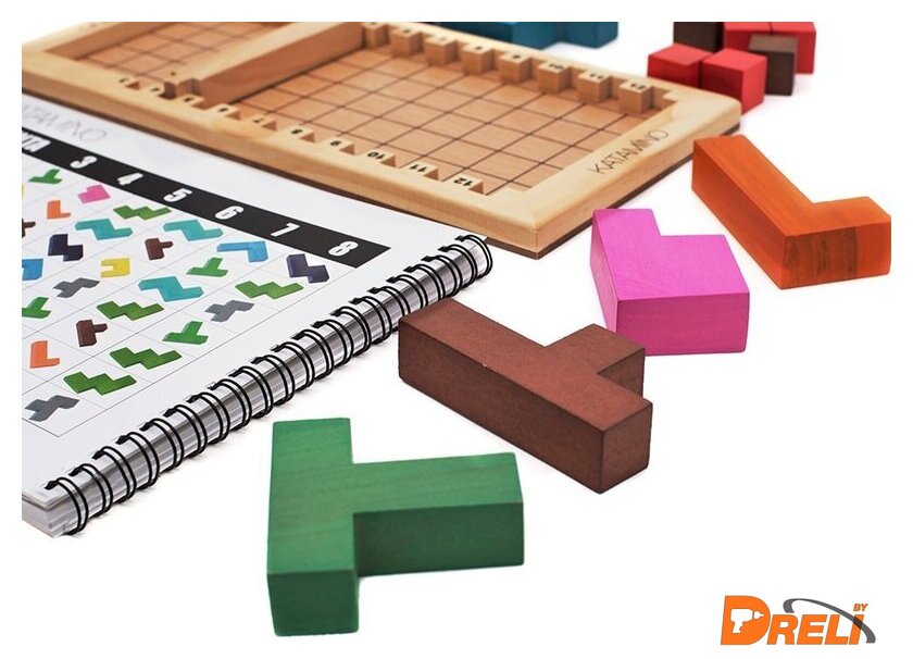| Комплектация | 12 пентамино, 5 красных кубиков, 3 коричневых кубика, 1 игровое поле, 1 барьер. |