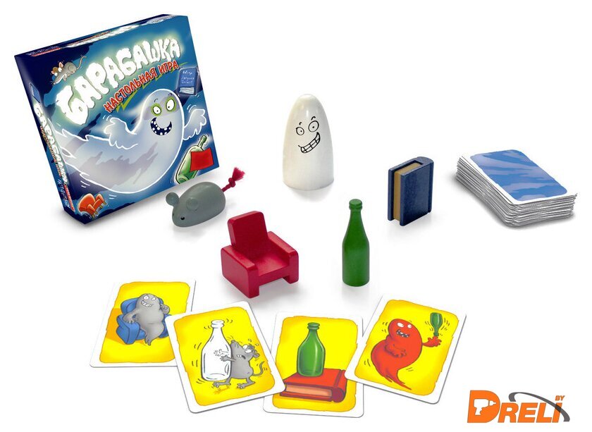 | Комплектация | - 60 карт- 5 предметов для хватания: зелёная бутылка, красное кресло, белое привидение, серая мышка, синяя книжка- правила игры на русском языке- коробка |