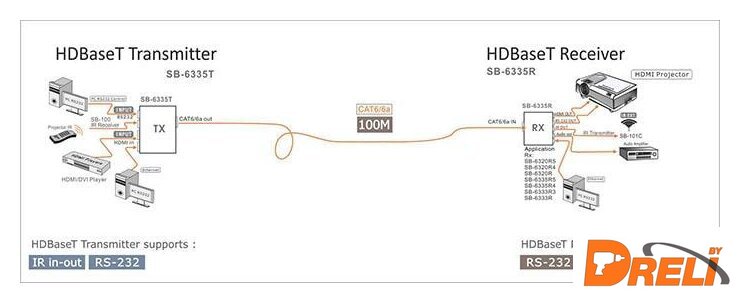 удлинитель по витой паре HDMI/COM (RS-232)/DC-jack/RJ45, черный