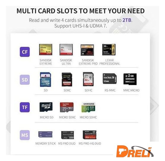 | Поддержка карт (без адаптера) | CompactFlash, SD, SDHC, SDXC, microSD, microSDHC, microSDXC, Memory Stick, Memory Stick Duo, Memory Stick PRO HG Duo, MMCmicro, RS-MMC |