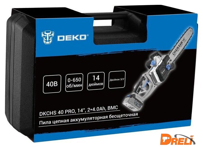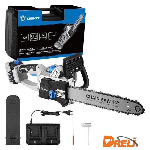 | Комплект поставки | - Пила аккумуляторная - 1 шт.- Аккумулятор 4,0 Ач - 2 шт.- Двойное зарядное устройство - 1 шт.- Пильная шина - 1 шт.- Цепь - 1 шт.- Защитный кожух шины - 1 шт.- Ключ - 1 шт.- Инструкция- Кейс |