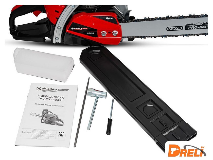 Комплект поставки | - Двигатель- Пильная цепь- Направляющая шина- Ножны для направляющей шины- Свечной ключ- Напильник |