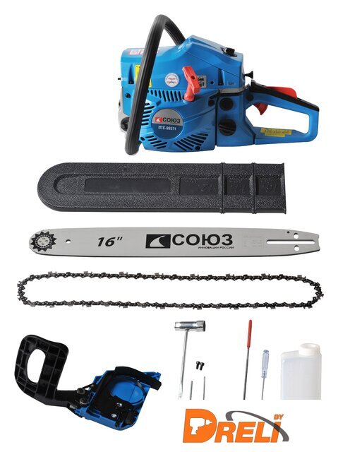 | Комплект поставки | Цепь и шина.Пластиковый защитный кожух.Отвертка.Мерный стакан для приготовления топливной смесиКомбинированный ключ.Круглый напильник для заточки цепи. |