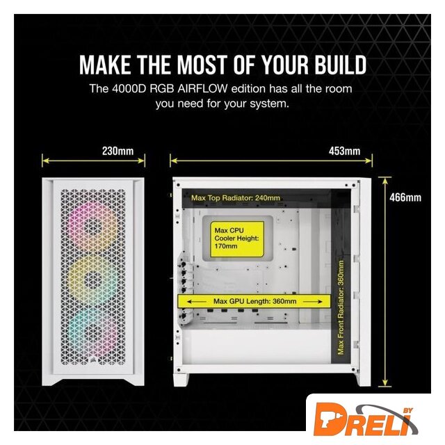 | Конфигурация вентиляторов | спереди: 3 x 120 мм или 2 x 140 ммсверху: 2 x 120 мм или 2 x 140 ммснизу: 2 x 120 ммсзади: 1 x 120 мм |