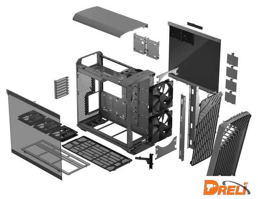 черный, блок питания отсутствует, 3 вентилятора