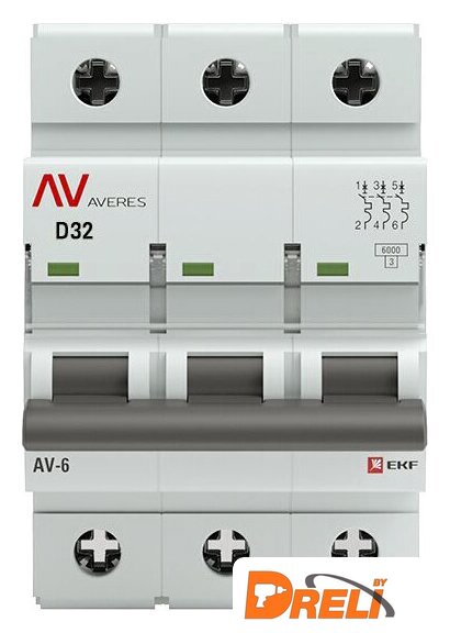 32 А, 3P, кривая тока: C, ном. отключающая способность 6 кА