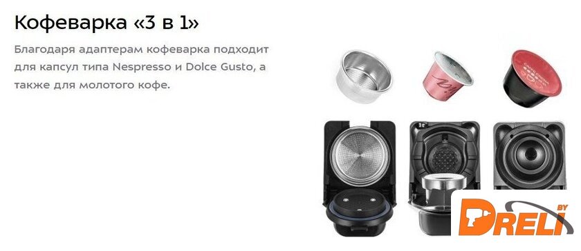 | Тип капсул | Nespresso Original, Dolce Gusto |