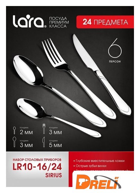 | Состав столового набора | вилка столовая, ложка столовая, ложка чайная, нож столовый |