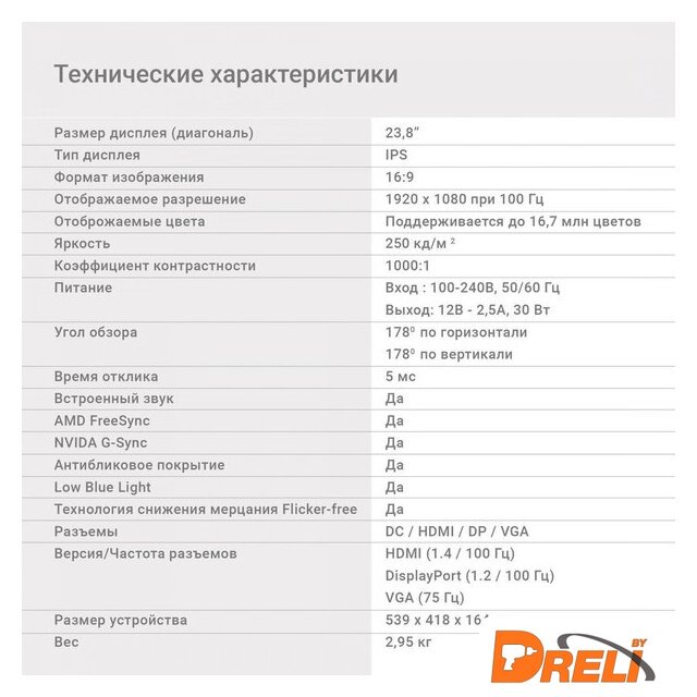 Интерфейс подключения | HDMI, DisplayPort, D-Sub (VGA) |