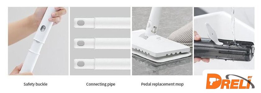 | Дополнительные насадки и приспособления | ткань для швабры, сумка для хранения |