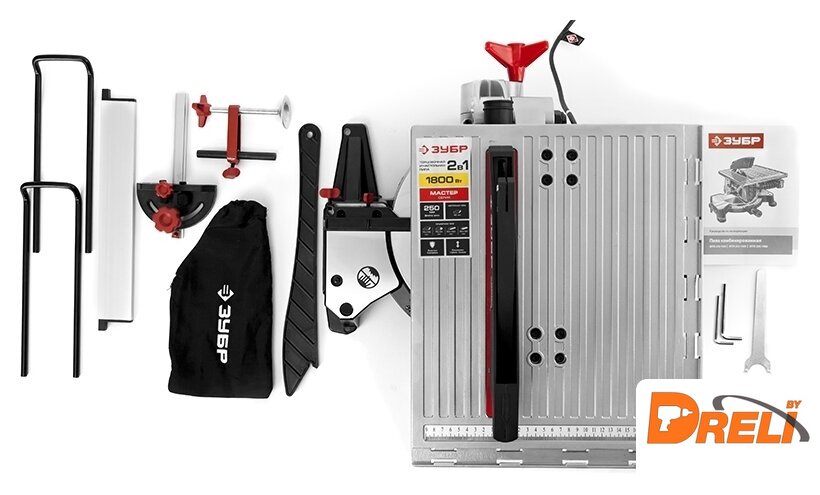 Комплектация | Диск пильный (установлен)Удлинитель стола 2 шт.Продольный упорТолкатель заготовкиКлюч имбусовый 3 штКлюч фланцевыйСтрубцинаВинт-барашекТранспортирМешок для сбора пылиРуководство по безопасности Руководство по эксплуатации |