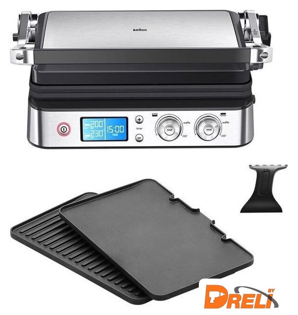 Комплектация | Электрогриль со съемными нагревательными пластинами: гладкая и ребристая, шпатель |