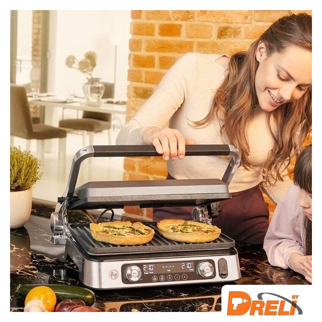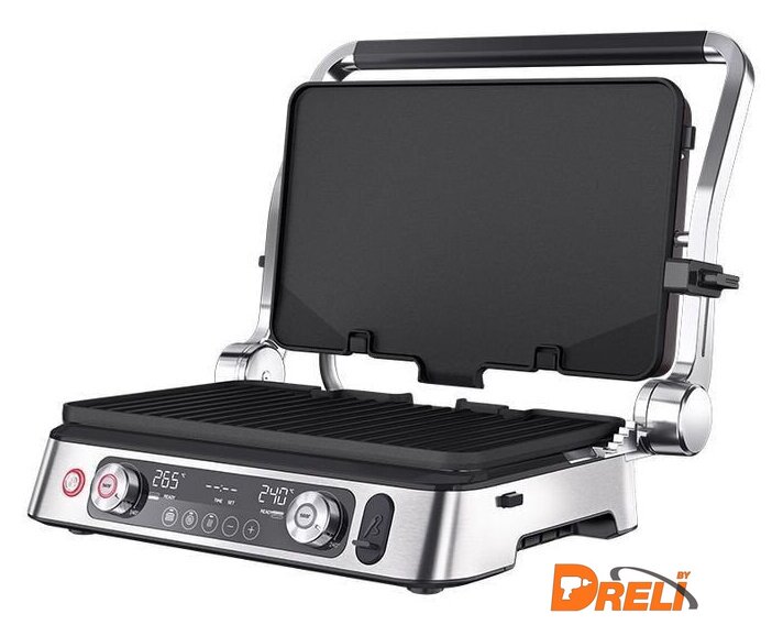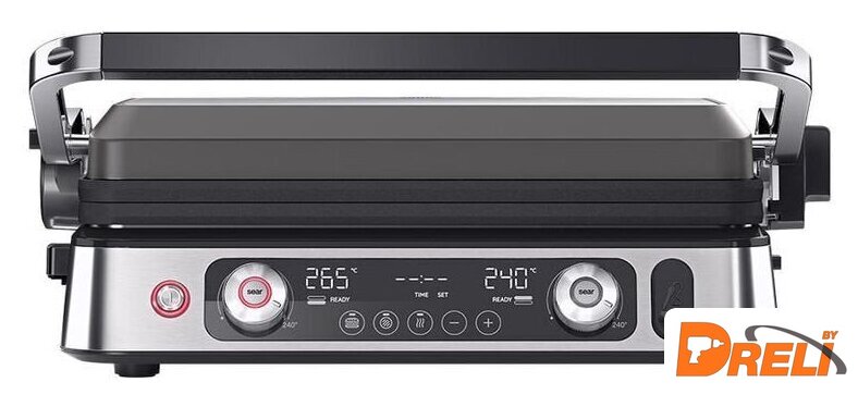 Комплектация | Электрогриль со съемными нагревательными пластинами: гладкая, ребристая, вафельницаТермощупМерная чашечка |