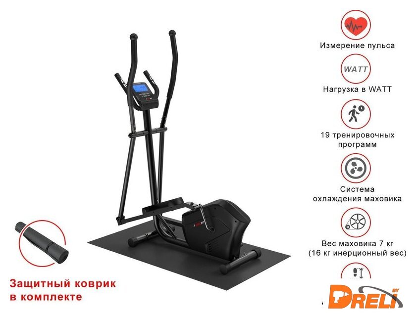 Показания на дисплее | время, дистанция, пульс, калории, скорость, обороты, нагрузка Ватт |