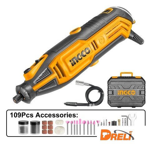 | Комплектация | Гравер, гибкий вал, аксессуары 109шт, угольные щетки – 1комп., инструкция, гарантийный талон. |