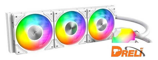 типоразмер 240, рассеивание до 280 Вт, макс. шум 29.1 дБ, вентилятор 120 мм, 2200 об/мин, PWM, ARGB подсветка, белый