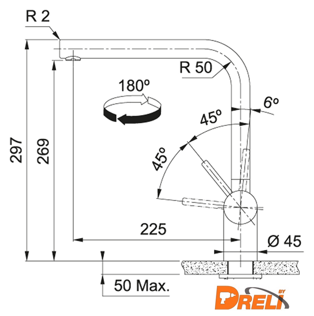 | Поворотный излив | 180 ° |