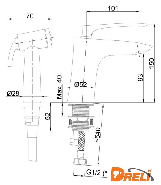 | Высота | 150 мм (смесителя) |