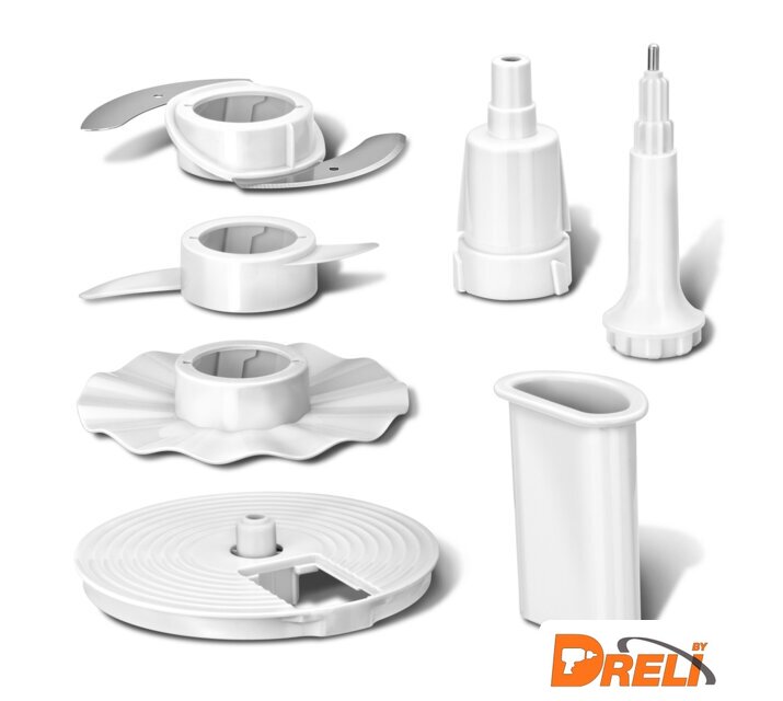 | Функции | взбивание, смешивание, измельчитель, рубка, терка, шинковка, ломтерезка, драники |