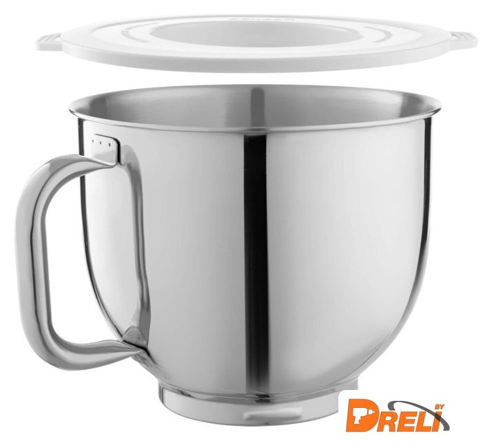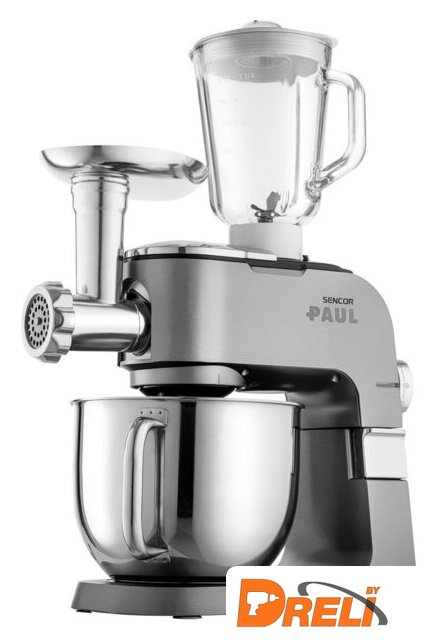 | Полная комплектация | чаша из нержавеющей стали 6.5 л, стеклянный блендер 1.5 л, мясорубка, мельница для кофе и специй, 3 насадки для замеса, взбивания и жидкого теста, гибкая насадка FLEXI, 4 тёрки из нержавеющей стали, формочка для печенья, насадка для приготовления колбас, защитная крышка на чашу, крышка для хранения |