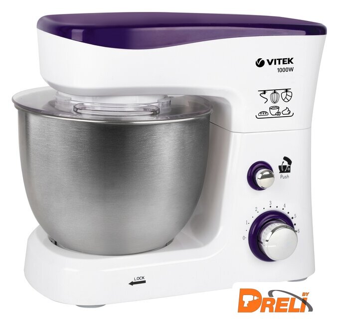 Полная комплектация | Моторный блок. Чаша. Защитная крышка на чашу. Лопатка. Насадка-венчик.Насадка для теста. Насадка для смешивания. |