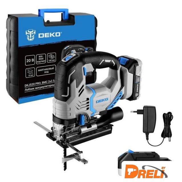 Комплект поставки | - Лобзик – 1 шт.- Аккумулятор 2,5 Ач – 2 шт.- Зарядное устройство – 1 шт.- Пильное полотно – 1 шт.- Параллельный упор – 1 шт.- Пылесборник - 1 шт.- Руководство по эксплуатации.- Кейс. |