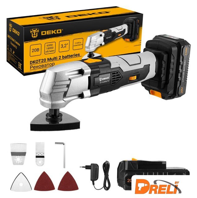 Комплект поставки | - Многофункциональный инструмент - 1 шт- Аккумулятор 2,0 Ач - 2 шт.- Зарядное устройствао - 1 шт.- 32 мм стандартное лезвие - 1 шт.- Жесткое скребковое лезвие - 1 шт.- Шлифовальная подошва - 1 шт.- Шлифовальный лист P60 - 1 шт.- Шлифовальный лист P80 - 1 шт.- Шестигранный ключ - 1 шт.- Инструкция- Коробка |