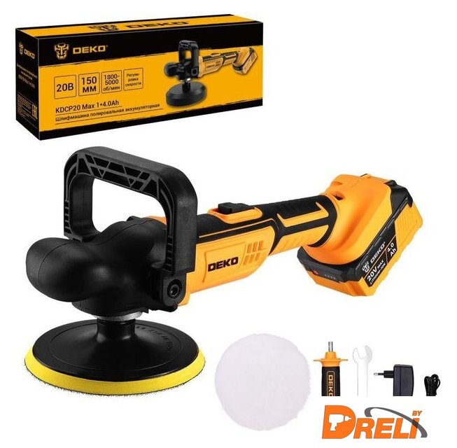 | Комплект поставки | - Шлифмашина – 1 шт.- Опорная тарелка – 1 шт.- Полировальный круг (шерстяной) – 1 шт.- Аккумулятор 4,0 Ач – 1 шт.- Зарядное устройство – 1 шт.- Дополнительная рукоятка – 1 шт.- Винт – 2 шт.- Шестигранный ключ – 1 шт.- Руководство по эксплуатации- Коробка |