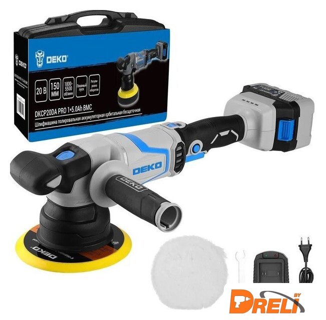 | Комплект поставки | - Шлифмашина;- АКБ;- Зарядное устройство;- Опорная тарелка;- Полировальный круг (шерстяной);- Дополнительная рукоятка;- Ключ;- Руководство по эксплуатации;- Пластиковый кейс. |