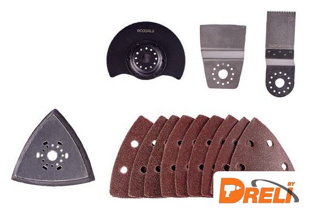 Комплект поставки | Треугольная шлифовальная подошва9 шлифлистов (3*P60/3*P80/3*P120)ШаберПогружное пильное полотно по дереву (HCS)Полотно по дереву, металлу и пластику (HSS)Поставляется без аккумулятора и зарядного устройства! |