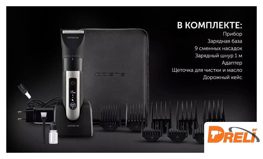 | В комплекте | блок питания, зарядная база, защитный колпачок, кейс для хранения, масло, расческа, чехол, щеточка для чистки |