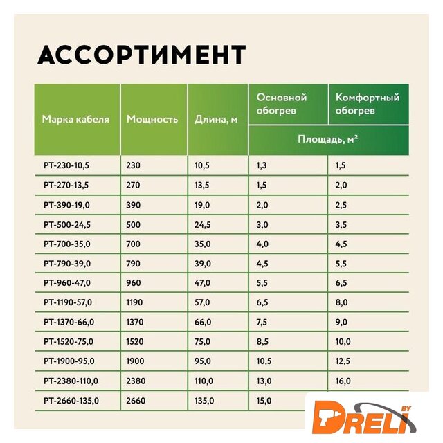 | Удельная мощность кабеля | 180 Вт/м |