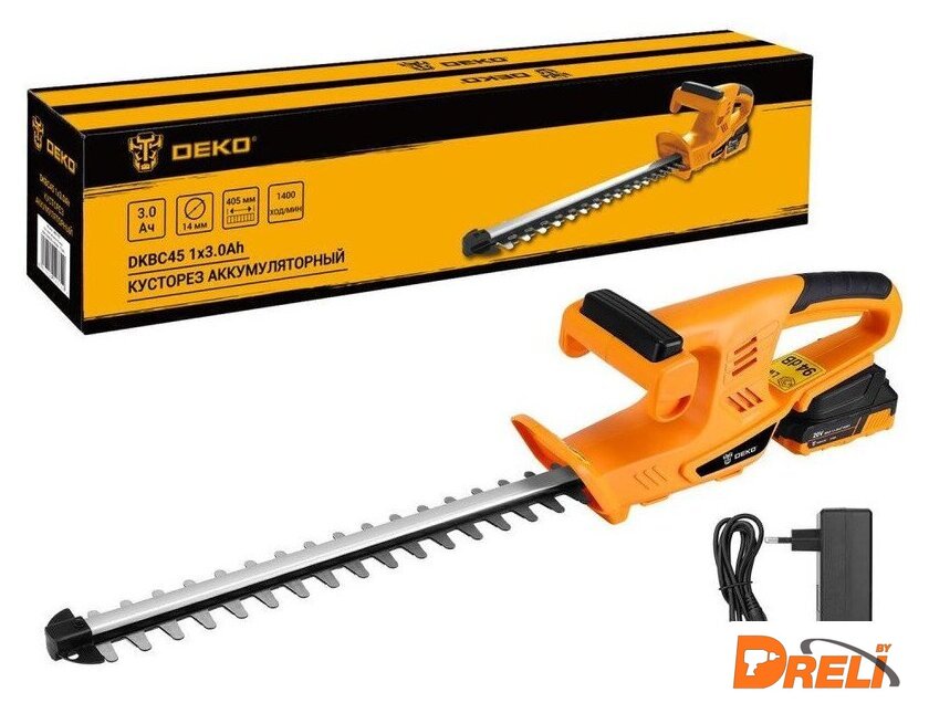 | Комплектация | - Кусторез - 1 шт.- Чехол для лезвия - 1 шт.- Аккумулятор 3,0 Ач - 1 шт.- Зарядное устройство - 1 шт.- Руководство по эксплуатации- Коробка |