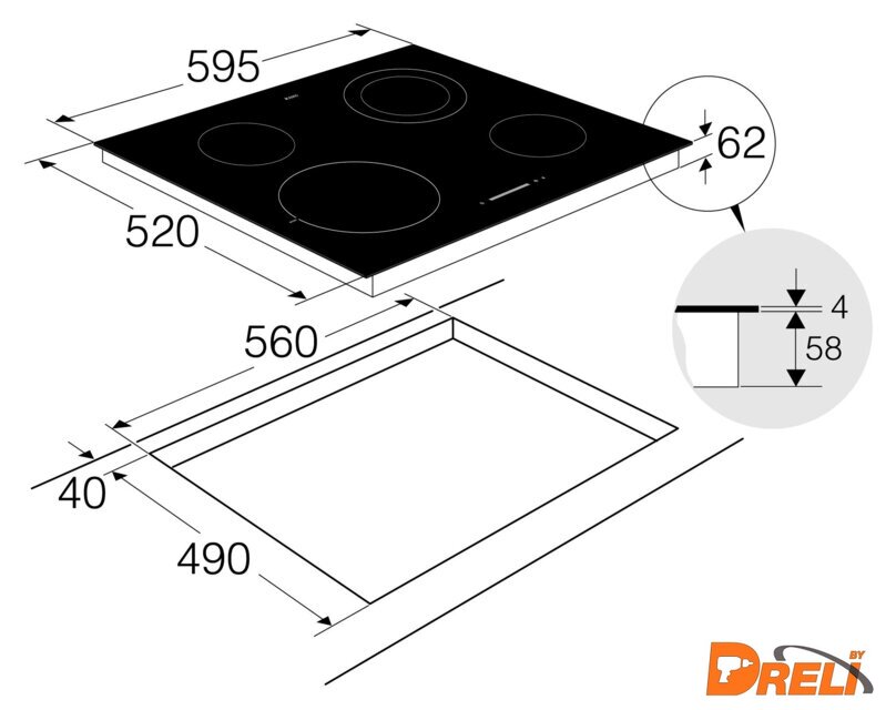 | Подробная информация о конфорках | Передняя левая: 21 см, 2,1/3 кВт, Передняя правая: 14,5 см, 1,2 кВт, Задняя левая: 14,5 см, 1,2 кВт, Задняя правая: 12/18 см, 0,7/1,7 кВт |