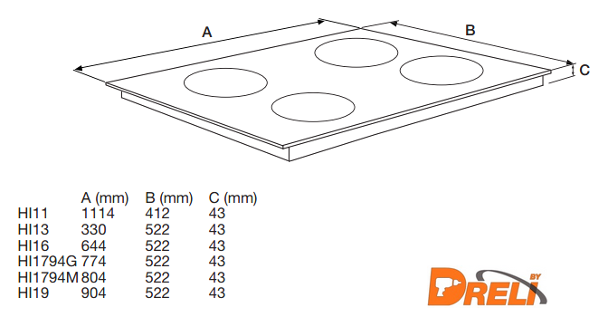 | Индукционные конфорки | 6 |