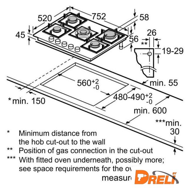 | Подробная информация о конфорках | Передняя левая - 1 кВт; передняя правая - 1.75 кВт; задняя левая - 1.75 кВт; задняя правая - 3.0 кВт; центральная - DualWok 4 кВт |