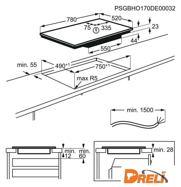 | Подробная информация о конфорках | Левая передняя 2300/3200 Вт / 210 ммЛевая задняя 2300/3200 Вт / 210 ммЦентральная зона 1400/2500 Вт / 145 ммПравая задняя 1600/2500/2300/3000/3600 / 3600W / 180/240 / 320 мм |
