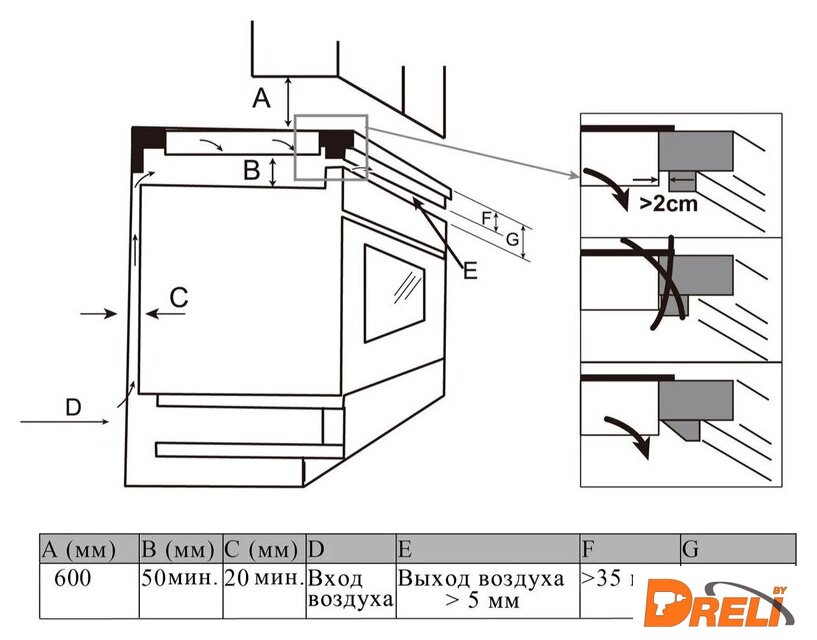 Размеры ниши для встраивания |