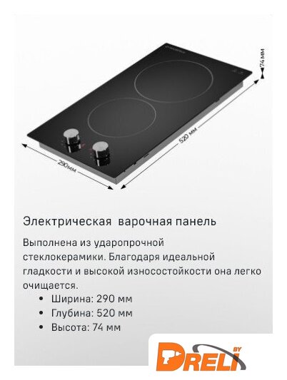 Подробная информация о конфорках | 1x1800 Вт1x1200 Вт |