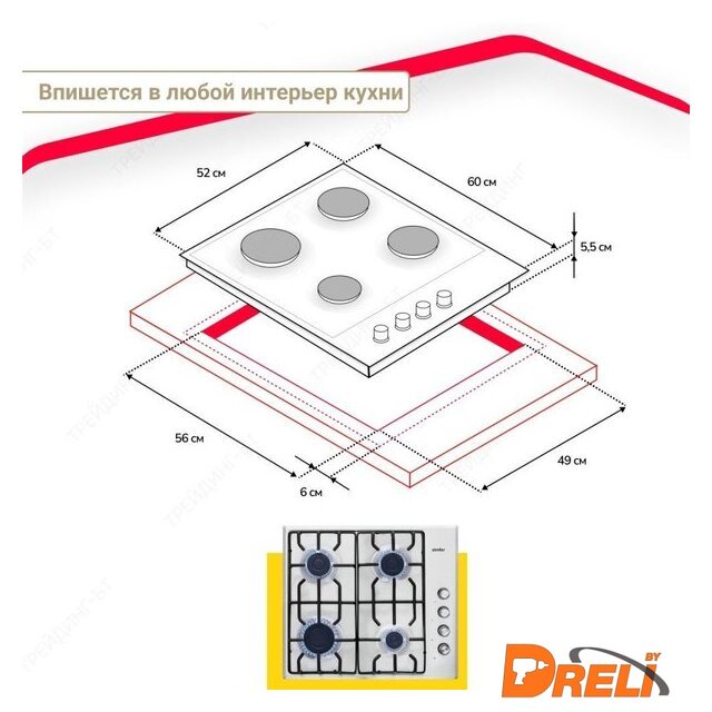 Овальные/прямоугольные конфорки | нет |
