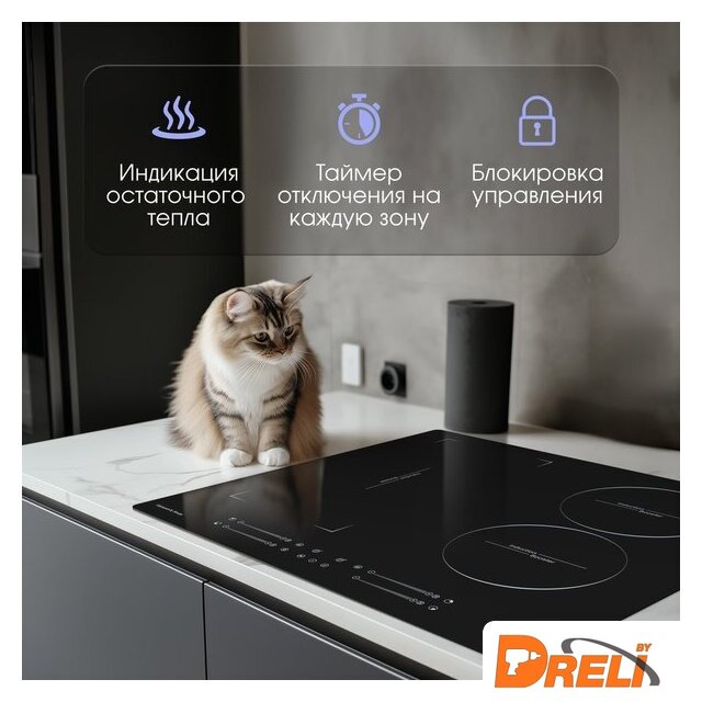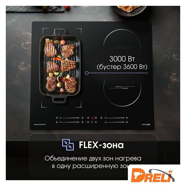 | Подробная информация о конфорках | Ближняя левая 180 мм, 1800/2300Дальняя левая 160 мм, 1200/ 1500Левая Flex-зона 190*385 мм, 3000/3600Дальняя правая 180 мм, 1800/2300Ближняя правая 160 мм, 1200/ 1500 |