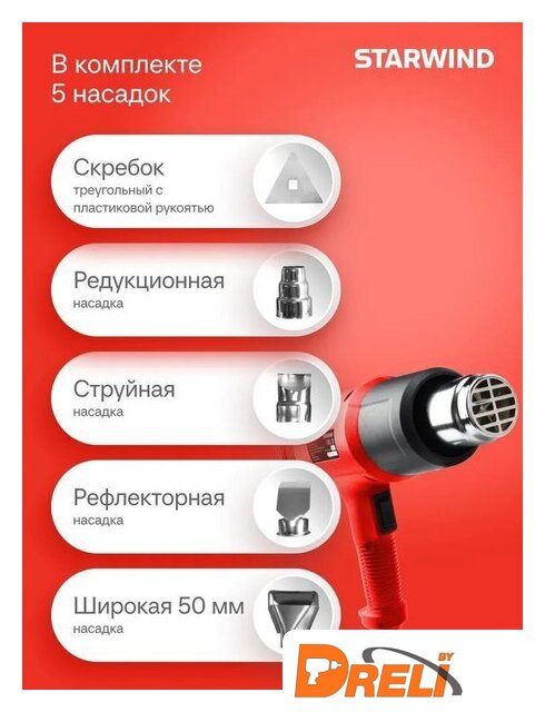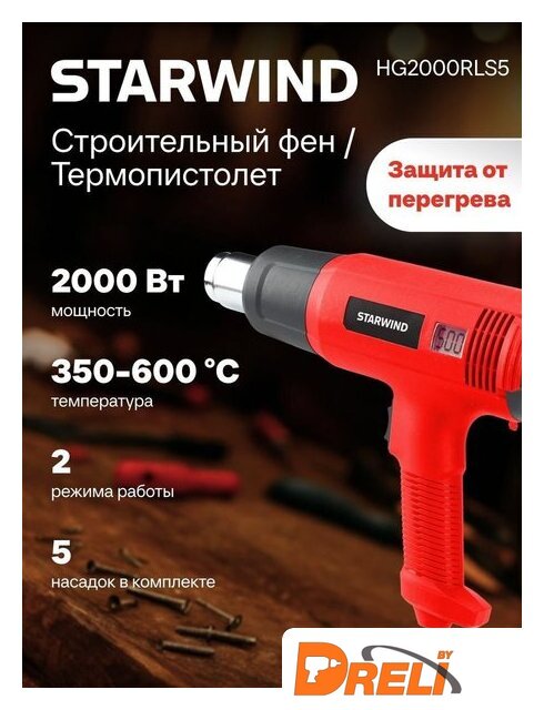| Комплект поставки | - фен Starwind HG2000RLS5, - 5 насадок, - кейс |
