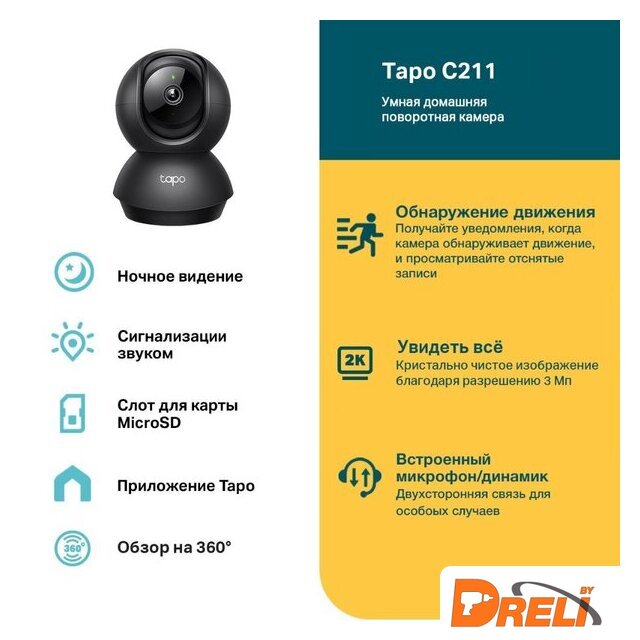 | Комплектация | Камера Tapo C211Адаптер питанияРуководство по быстрому запускуМонтажные винтыМонтажные анкеры Монтажный шаблонОснование камеры |