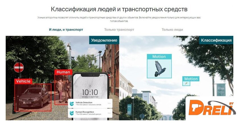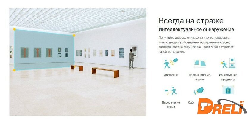 | Внутрикамерная видеоаналитика | обнаружение движения, пересечение линии, детекция лиц, детекция оставленных предметов, классификация транспортных средств |