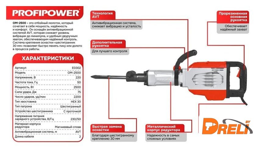 | Частота ударов | 2 200 ударов/мин |