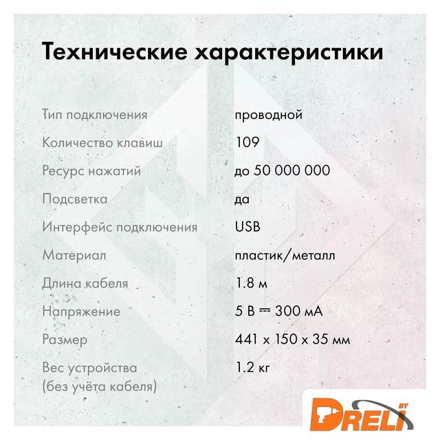 | Типоразмер клавиатуры | полноразмерная |